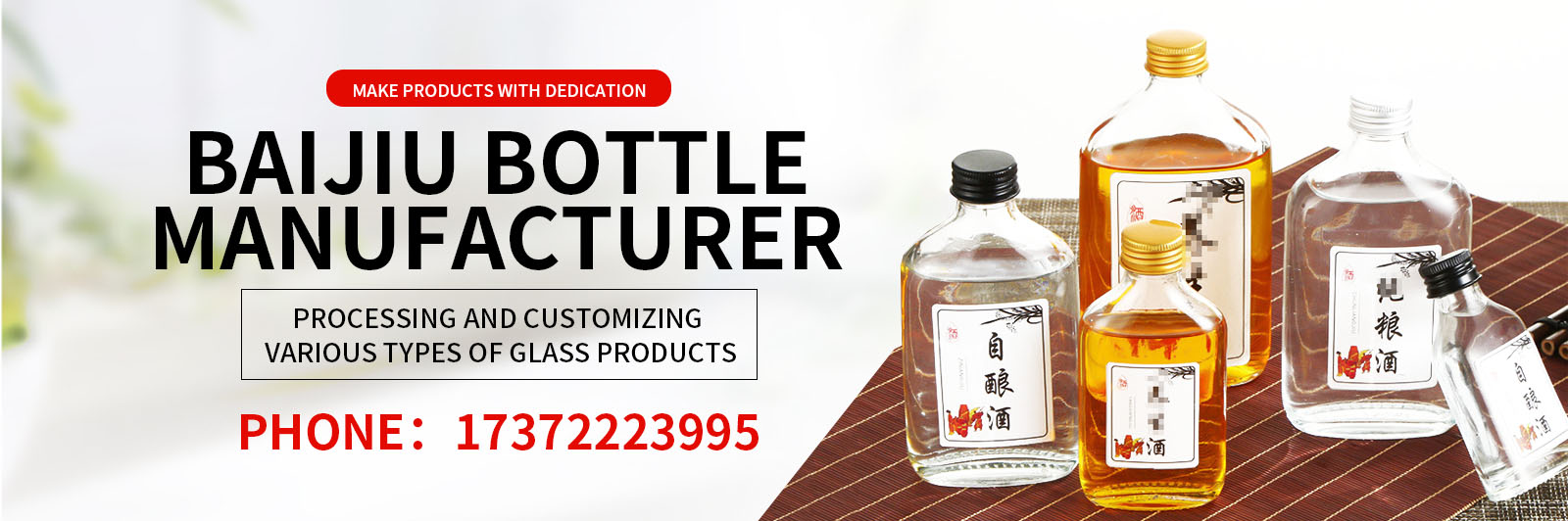 Xuzhou Huachu Craft Products Co., Ltd. is a professional glass bottle production and processing enterprise. Through the SGS US FDA, it has four automated production lines, two manual lines, and a daily output of 50 tons of glass. It is exported to more than 90 countries and regions, including the United States, Europe, and Western Asia. Its products mainly include wine bottles, beverage bottles, perfume bottles, Pickled vegetables bottles, German bottles, bee bottles, coffee bottles, health care bottles, milk bottles, glasses, glassware More than 30 series, including a glass stew table, and 1000 styles.